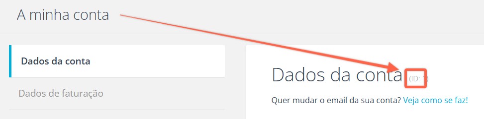 - ID de cliente E-goi: Depois de clicar no menu no canto superior direito, vá a Minha conta e verá o ID de cliente no topo da página (ao lado de Dados da conta).
