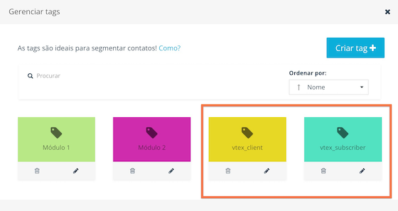 Os contatos ficam automaticamente identificados com essas tags quando fizer a sincronização.