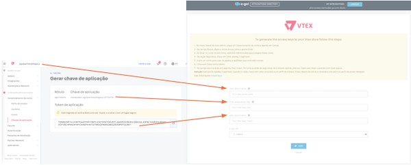 1) Siga o tutorial da VTEX para criar um par de chaves de acesso appKey e appToken. Salve-os em um local seguro.