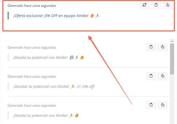 Cada sugerencia de texto la puedes copiar o insertar directamente en el contenido. Las sugerencias anteriores se quedan visibles por si las necesitas más tarde.