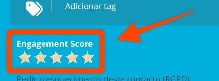 A pontuação é apresentada numa escala de 0 a 5 estrelas no perfil do contato. Quanto mais estrelas, mais o contato tem interagido com as comunicações que recebe pelo E-goi.