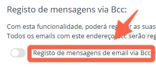 2) Activa la opción Registro de mensajes de email vía Bcc.