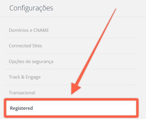 2) Una vez activado el envío de mensajes transaccionales, ve al menú en la esquina superior derecha, haz clic en Configuraciones y luego en Registered en el panel izquierdo.