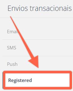 1) Ve al menú Informes, elige Mensajes transaccionales y haz clic en Registered a la izquierda.