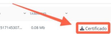 3) Una vez generada, la evidencia queda disponible en el área Certificados de esta misma página. Haz clic en el botón Certificado para obtener el documento PDF correspondiente. También aquí puedes eliminar el certificado si lo deseas.