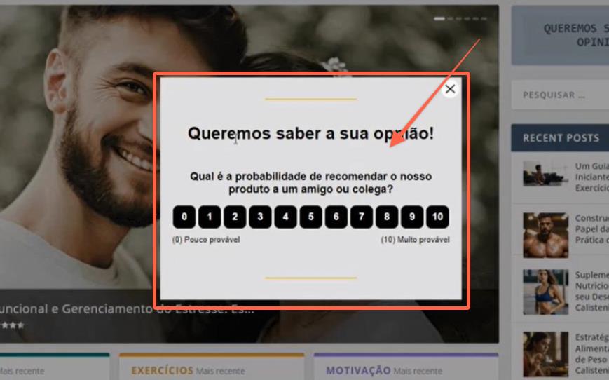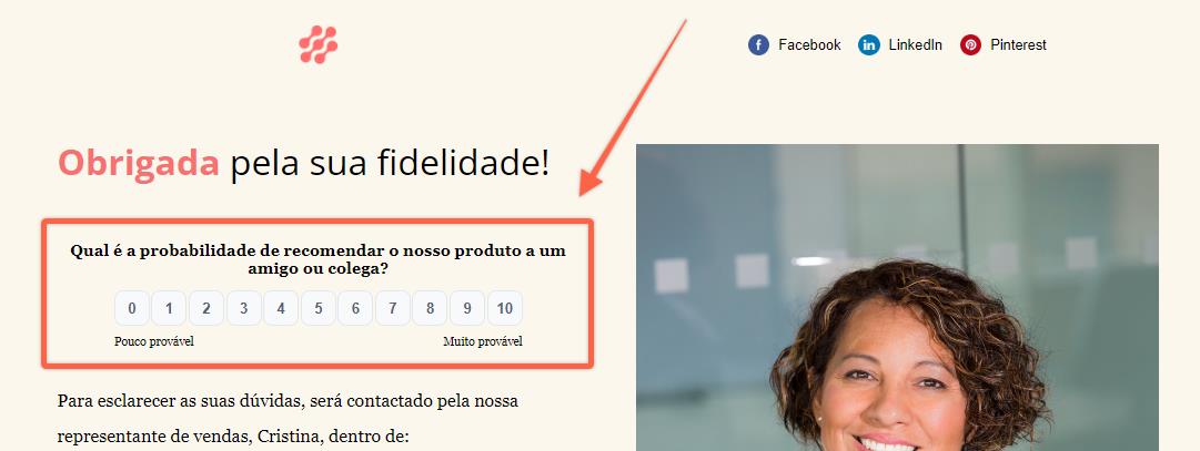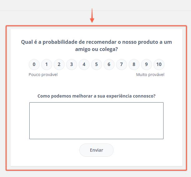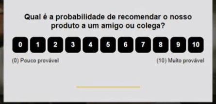 O NPS tem sempre uma escala de 0 a 10 (que não se pode mudar) e vem com o conteúdo mais frequente ("Recomendaria o nosso produto?"), que pode mudar livremente.
