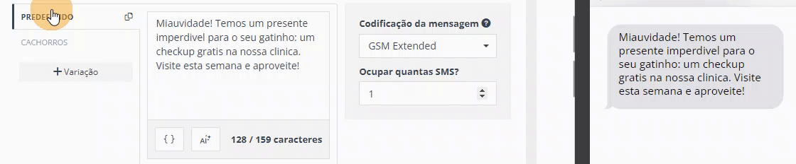 4) Type in the SMS content for the variation you've just created. The message preview will display it for that variation.