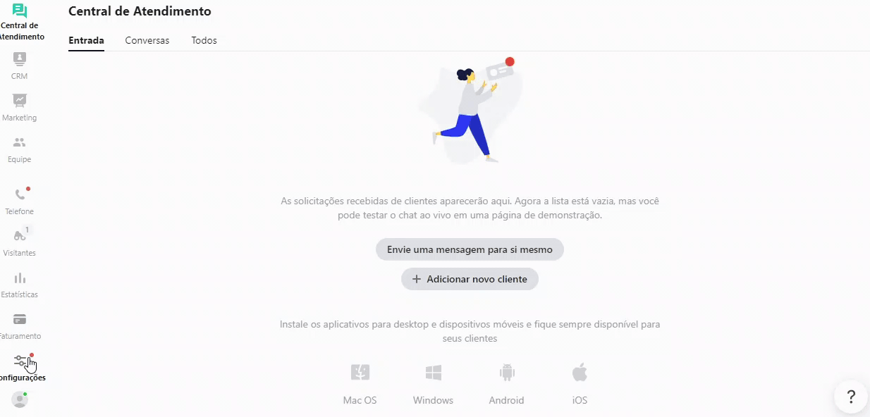 1) If you haven't done so, you'll need one or more communication channels set up in JivoChat. Head over to JivoChat's online help for a how-to.