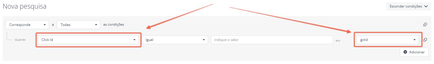 2) Use o critério Click ID, escolha um dos três tipos de ID do clique e escreva o valor que pretende.