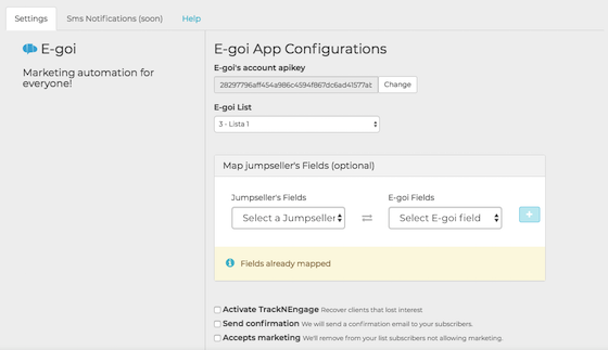 2) Si tu lista ya tiene campos extra, mapea esos campos con los campos correspondientes de Jumpseller (para agregar campos extra a tu lista de E-goi, ve a la configuración de la lista en tu cuenta de E-goi).