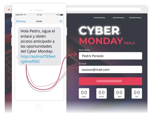 - Un SmartSMS con un texto introductorio que lleva a una landing con el resto del texto (así como imágenes y vídeos)