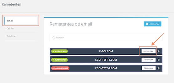 2) Once you've added the sender, click the Authenticate button alongside it.