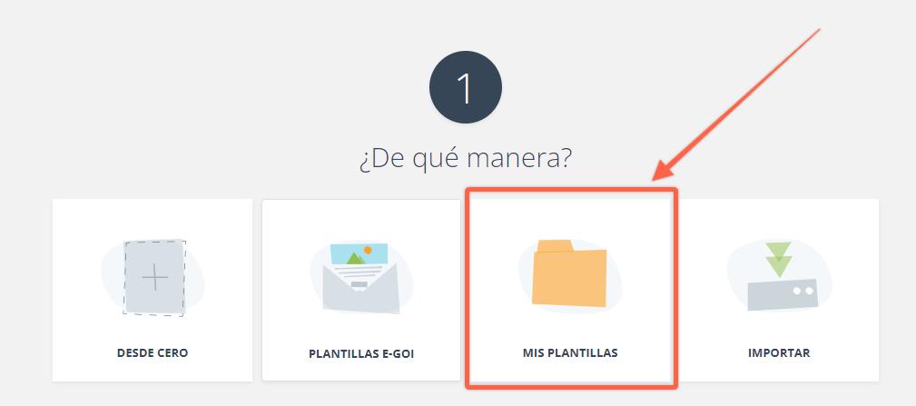 3) Para utilizar la plantilla que has guardado, elige Mis plantillas la próxima vez que crees una campaña (en el paso en el que E-goi te pregunta cómo deseas crearla) y selecciona la plantilla que has guardado.