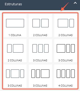 Escolha o tipo de estrutura que quer criar na página. Depois arraste um widget de conteúdo (ex. texto ou imagem) para dentro de cada coluna que pretende.